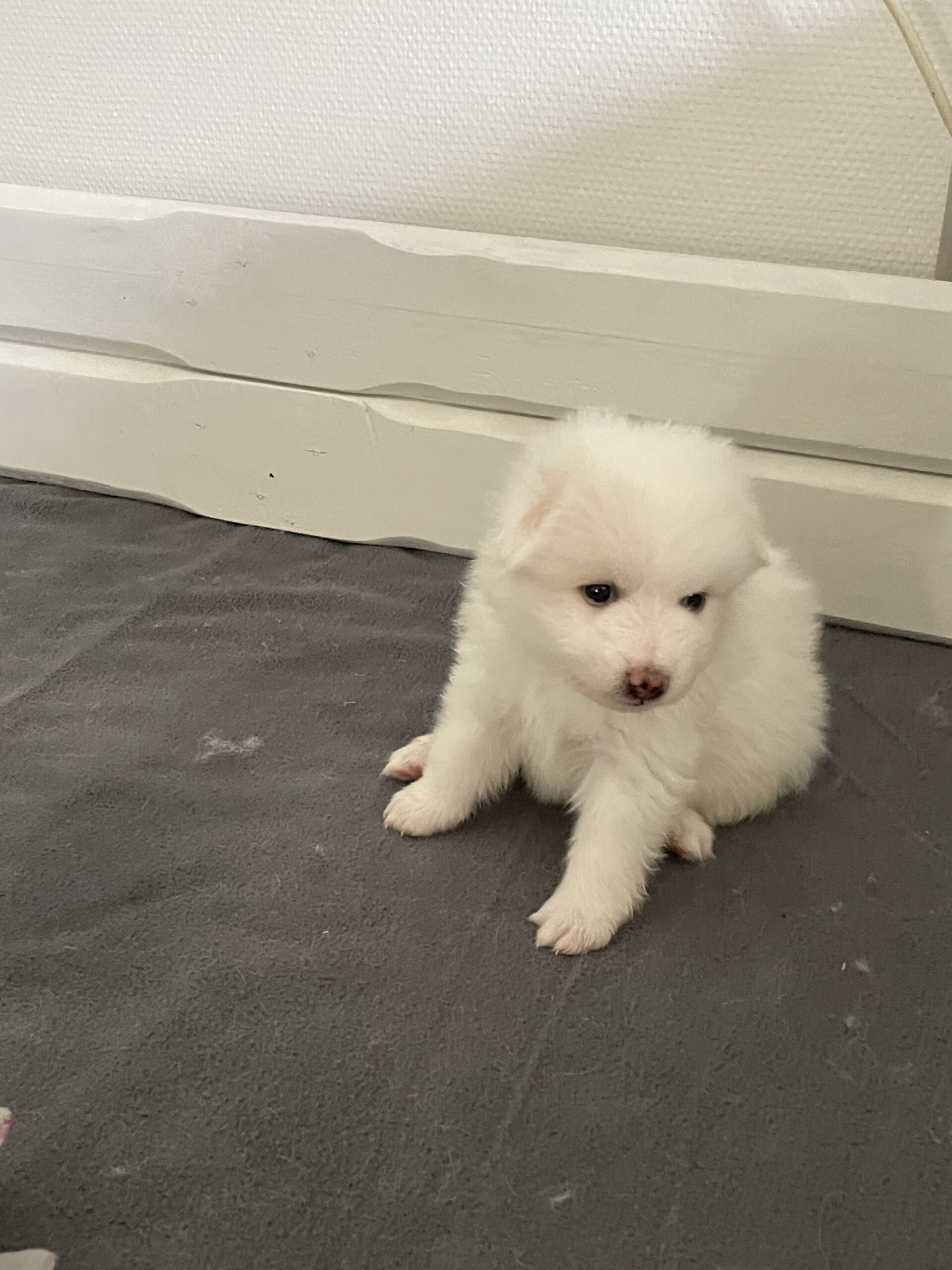 Denne søde japansk spids hanhund er klar til et nyt kærligt hjem pr. 7. August 2025.