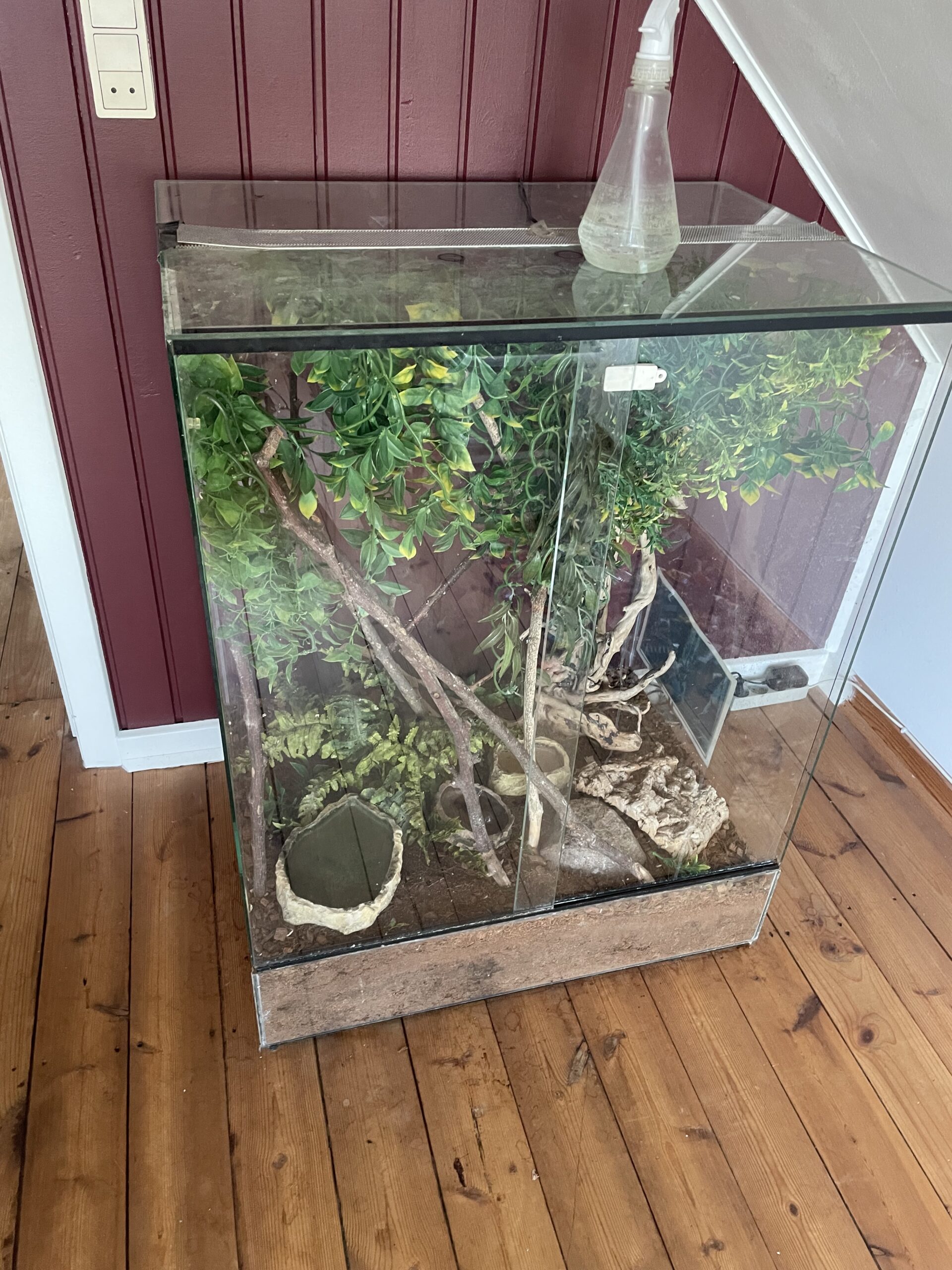 Er til salg med kamæleon bur og tilbehør.