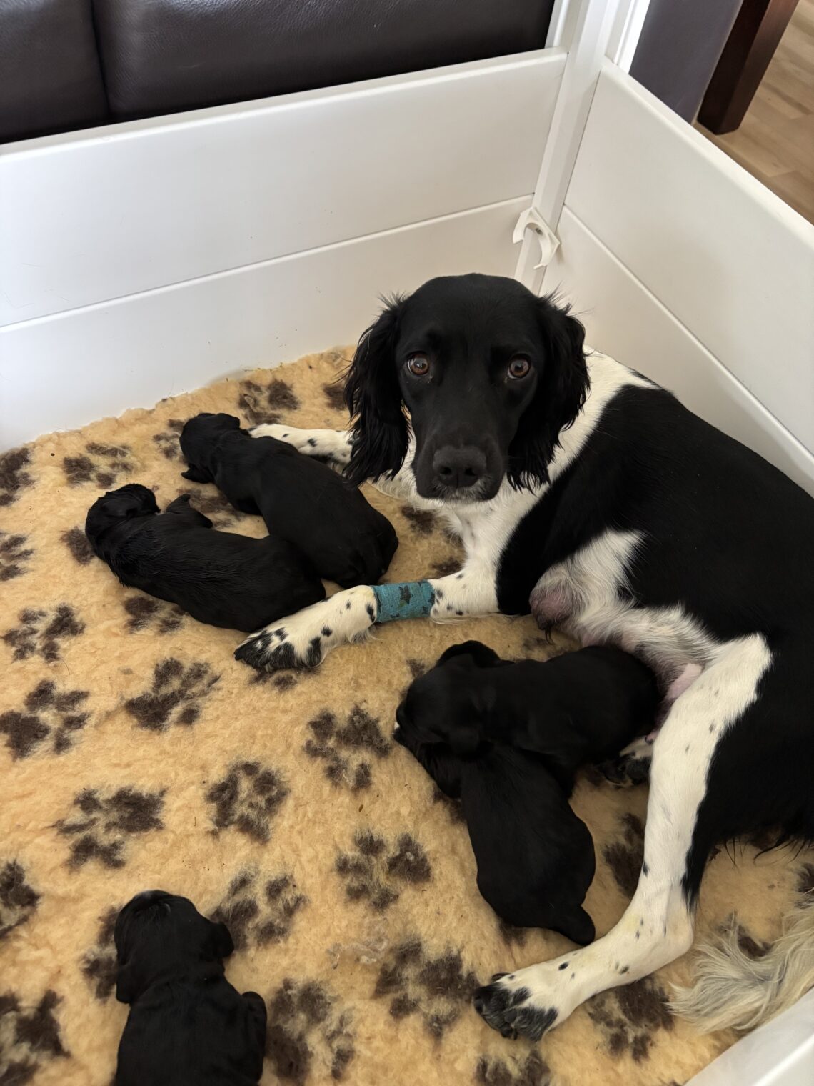 5 dejlige tævehvalpe ( en solgt) salgsklare 1. juni. Mor – Adele – er stambogsført Springerspaniel og far – Coxy – er stambogsført Cockerspaniel. Begge hunde dejlige familie- og jagthunde.