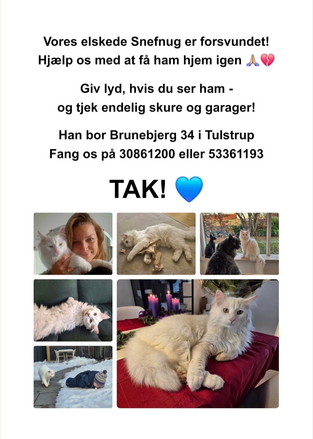 Hvis I ikke har set ham, vil I gøre os en stor tjeneste ved at kigge efter ham i fx aflukkede skure, da han er en nysgerrig rad 💙 Vi håber meget, at han snart er hjemme igen, da vi savner ham vildt! 😔