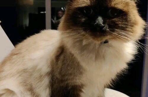 Hun har et særlig kende tegn for hun kan ikke rigtig sige miva som andre katte kan.