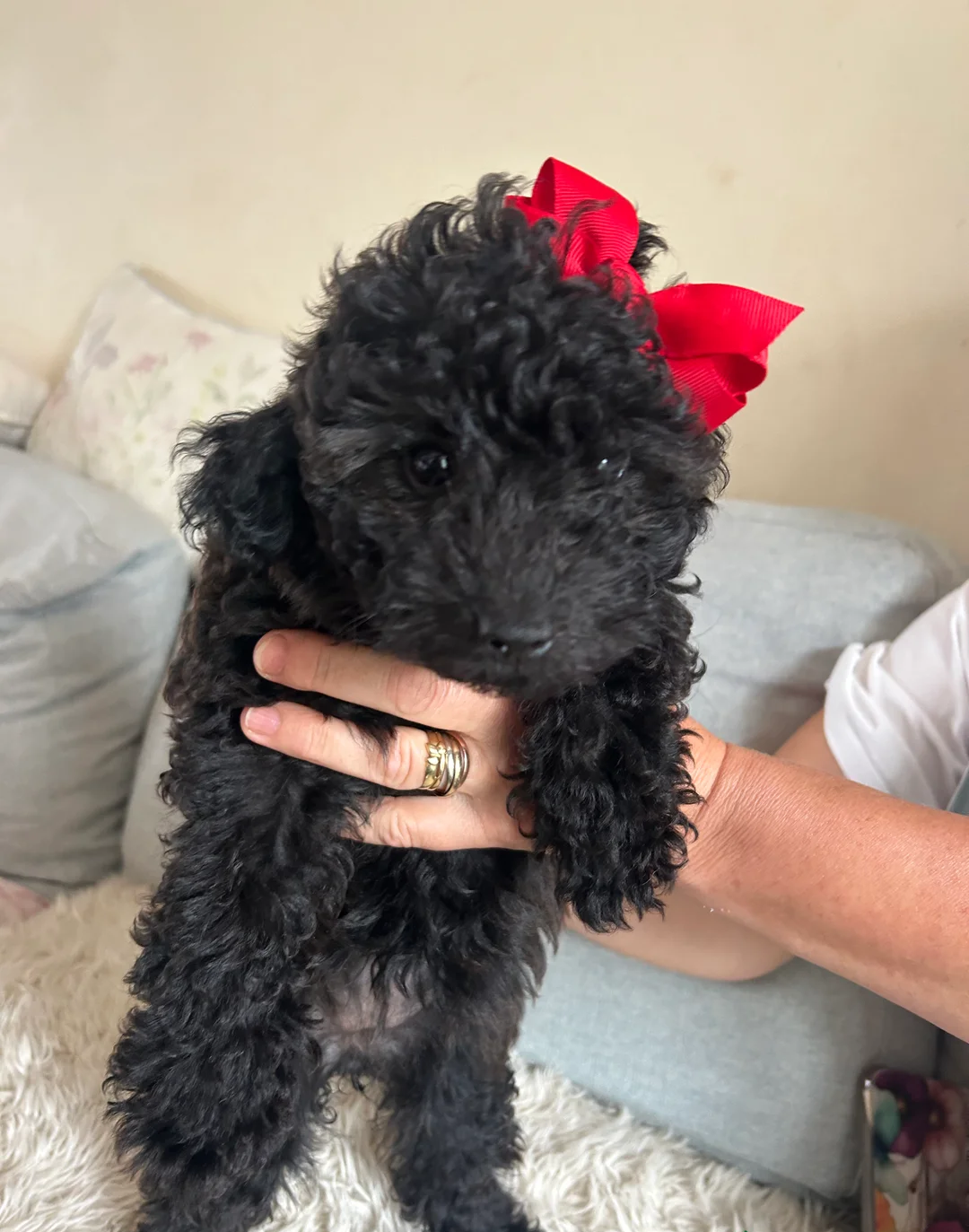 Vi har en sund hun-cavapoo-hvalp til rådighed, som er klar til at møde sit nye hjem. Hun er definitionen af lille, men kraftfuld. Hun er den mindste hvalp i vores kuld med den største og mest frække personlighed. Hun er absolut frygtløs, elsker alle, der går ind ad vores hoveddør, og har krøller, man kan dø for.