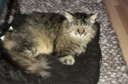 Hunkat bortløben fra Rø Nordbornholm d. 30 maj. Ej mærket men steriliseret og bærer som kendetegn en lille rød blis i panden. Farve: gråbrun , lys hvid mave.