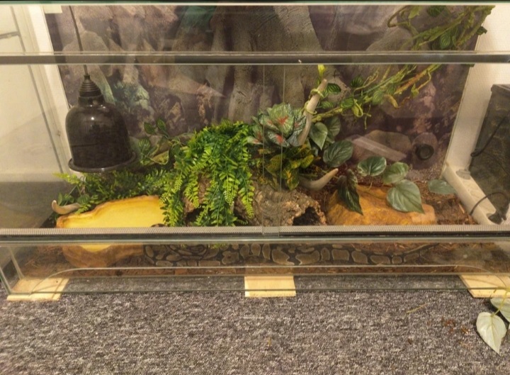 Jeg sælger min kongepython med et special lavet terrarium og et Exo Terra terrarium.