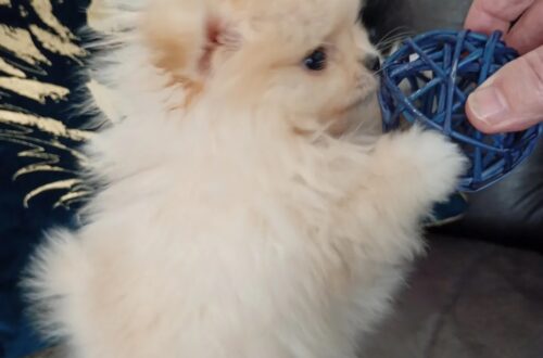 Lille Rocky, en lille, men nuttet dreng, ca. 4 måneder gammel, ca. 25 cm høj og vejer ca. 5 kg.