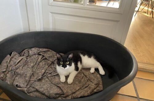 Luna er en petit kat med rund mave (hun er 1 md gravid).