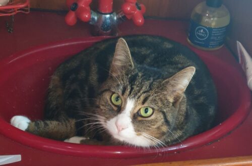 Min gode gamle trefarvede hunkat gennem 12 år er pludselig forsvundet for en god uges tid siden. Vi bor i Harring mellem Snedsted og Koldby. Hun bar halsbånd da hun forsvandt. Hun er meget hvid, har symmetriske sorte aftegninger på ryg, hale og hoved og nogle røde pletter hist og her i det sorte. Hun har lyserød snude og gul-grønne øjne.