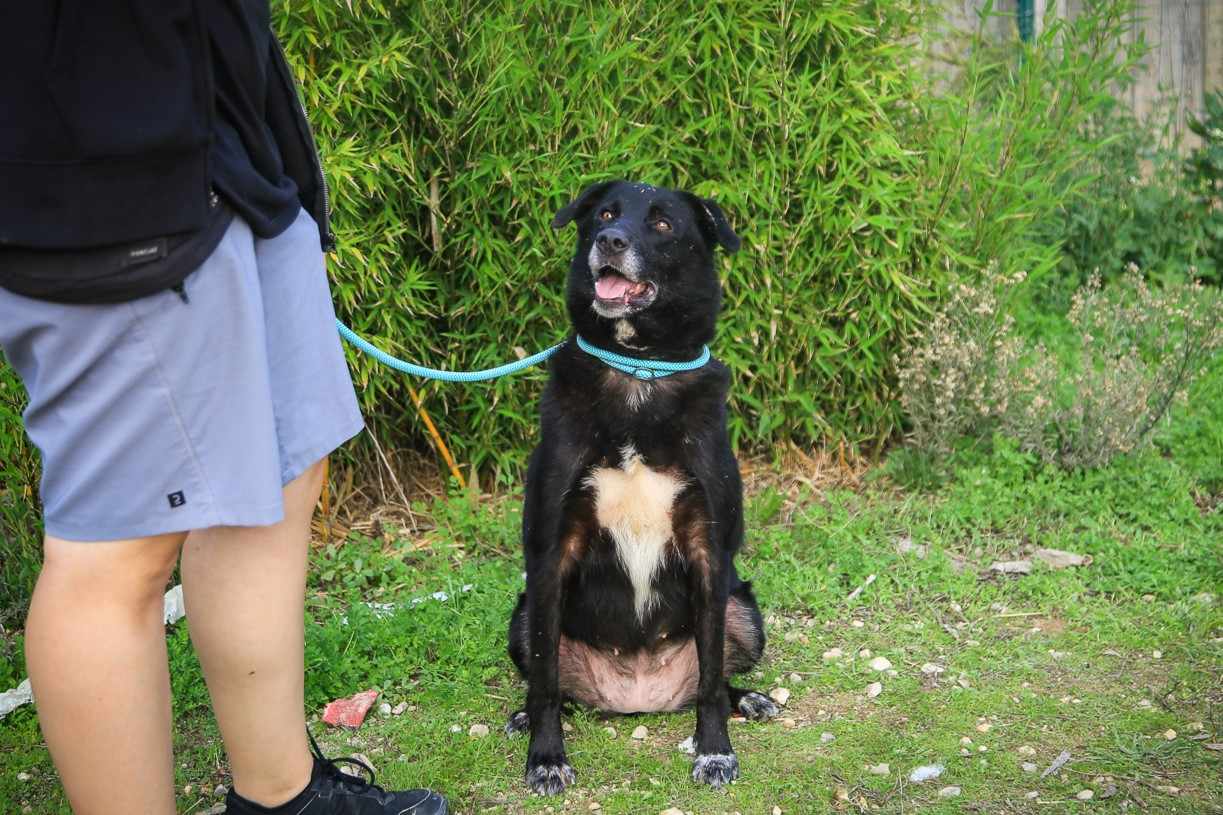 Nera blev overgivet til shelteret af sin tidligere ejer, som ikke ville have hende mere. Han overgav også to meget forsømte hvalpe, ikke Neras hvalpe, men det får os til at spekulere på, hvor mange hunde han stadig har.