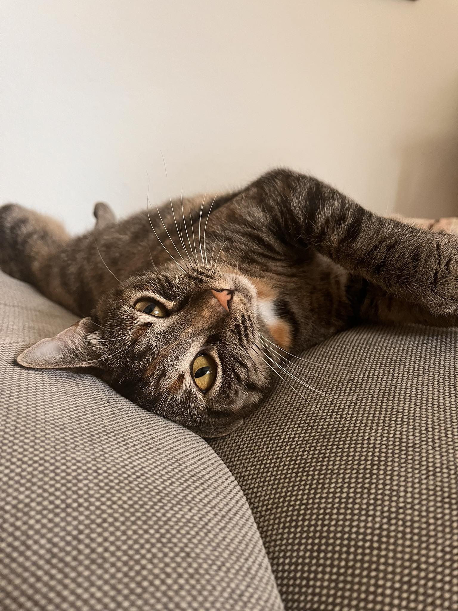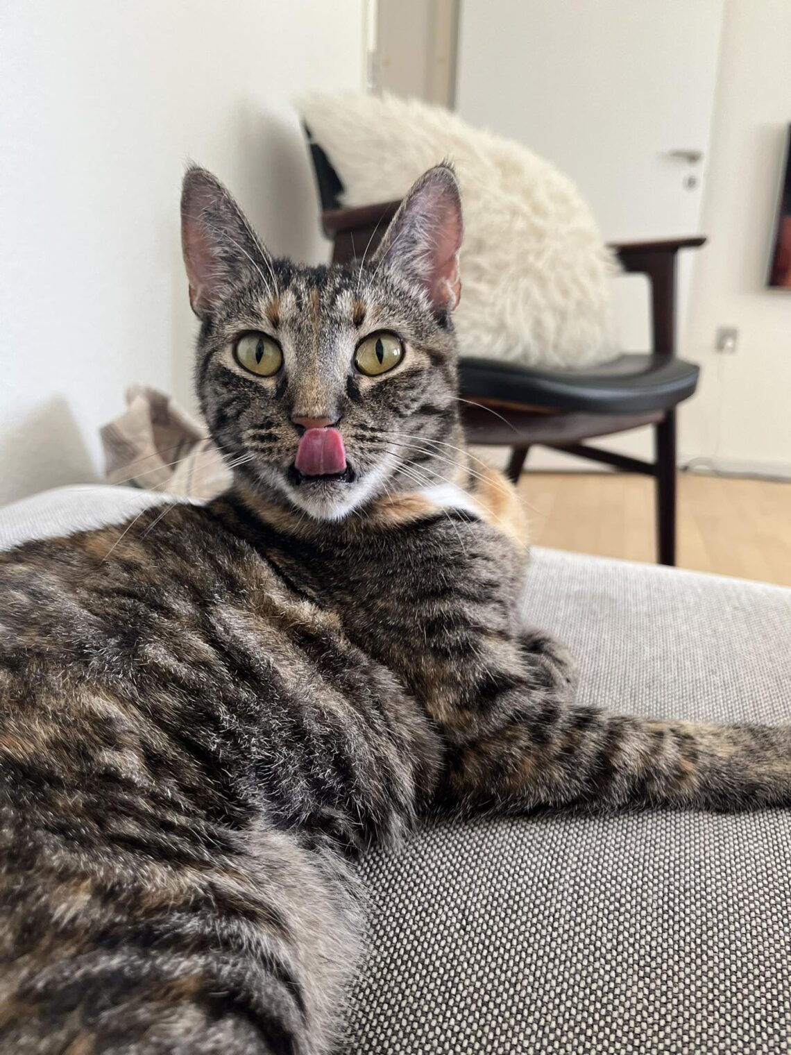 Hun har et blidt og mildt sind. Selvom hun stadig er usikker, har hun aldrig hvæset, bidt eller revet, hvilket siger meget om hendes fine væsen. Hun reagerer med ro og søger ikke konflikt – hun har bare brug for tid og tålmodighed.