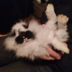 De er blanding af en rolig dværg kanin mor og en kælen løvehoved far