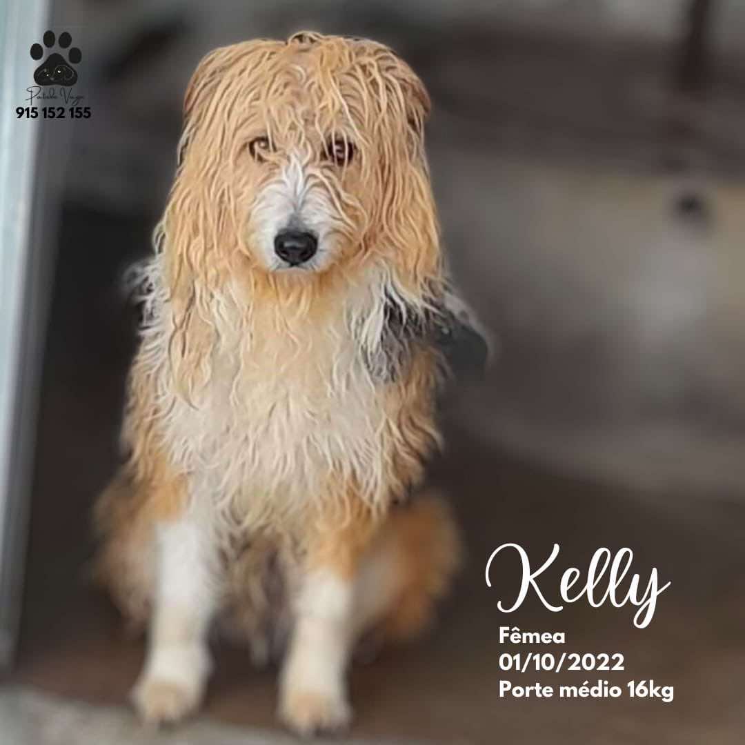 Søde Kelly med hendes lange pjuskede pels er 2 år og vejer 16 kg.kelly vil være på shelter i Portugal indtil der er en familie til hende.kelly er en super dejlig pige der til en start er lidt forsigtig . Hun kommer dog hurtigt over det og vil gerne nusses og snakkes med. Kelly kræver pelspleje så dette skal man være forberedt på , tilgengæld fælder hun minimalt. Kelly går ok i snor og er glad for at lege med andre hunde.