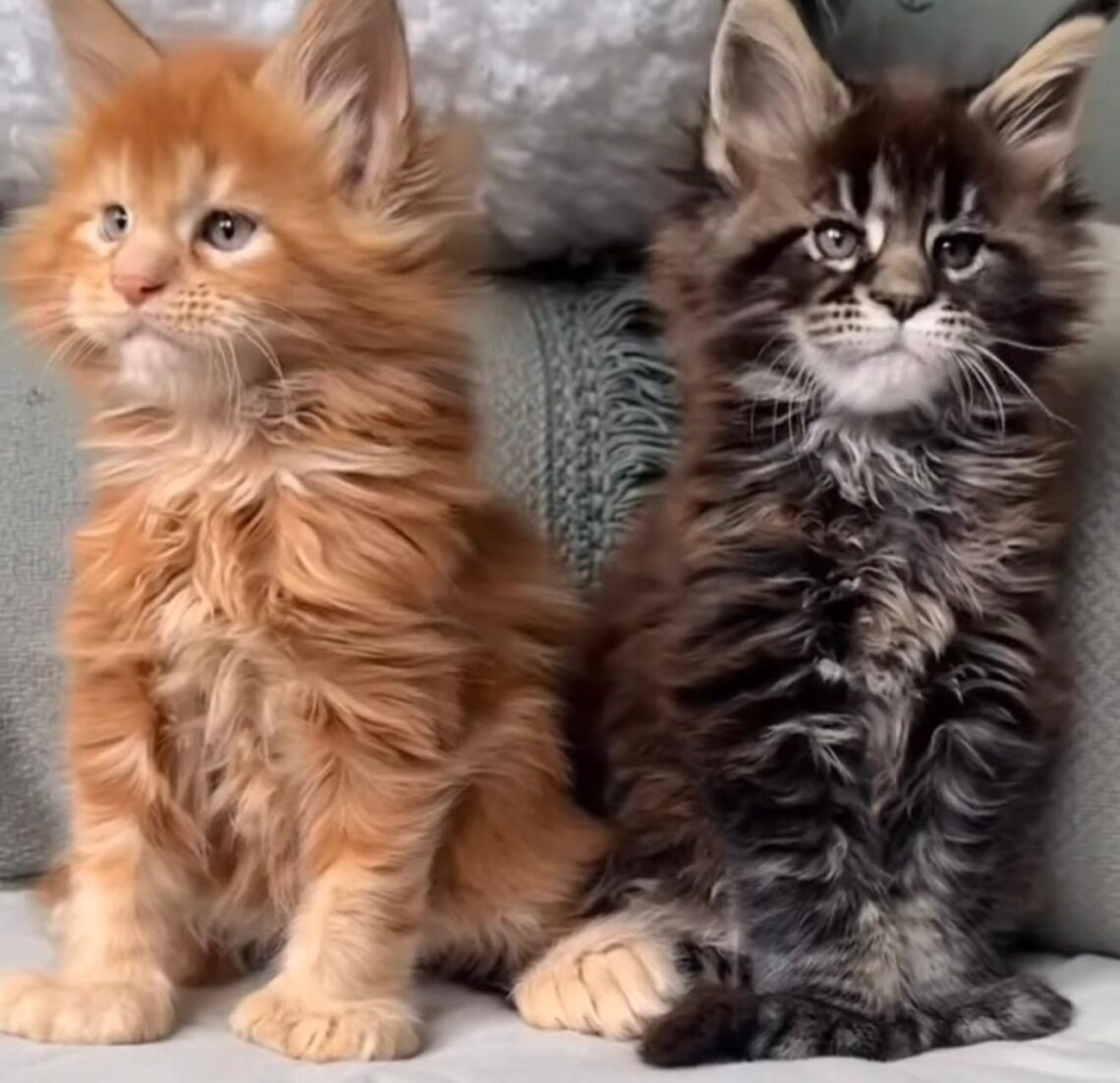 Smukke Maine Coon-killinger leder efter deres hyggelige sofa