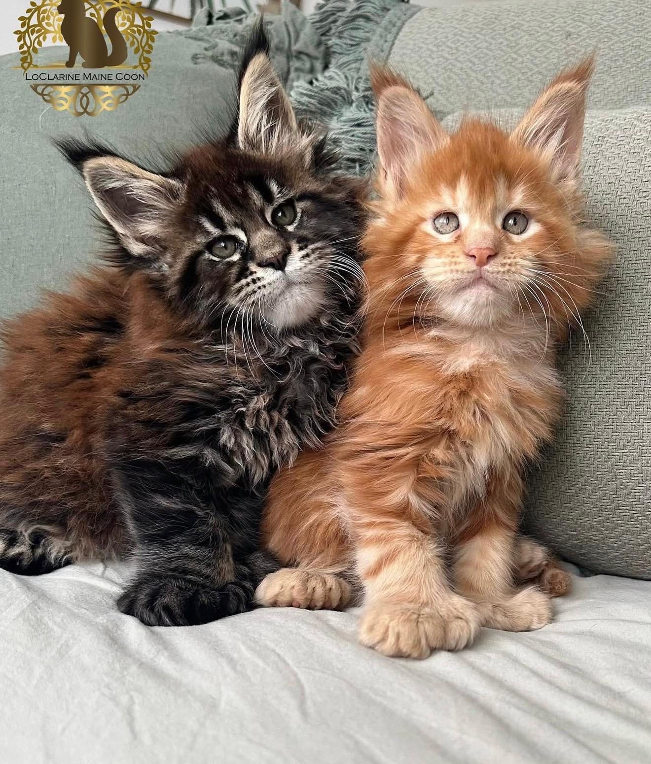 Vi er tre små fnugbolde, Maine Coon-killinger, født den 15. november 2025. Vores kattemor siger, at vi begge er utroligt søde, og at man ikke kan lade være med at forelske sig i os.