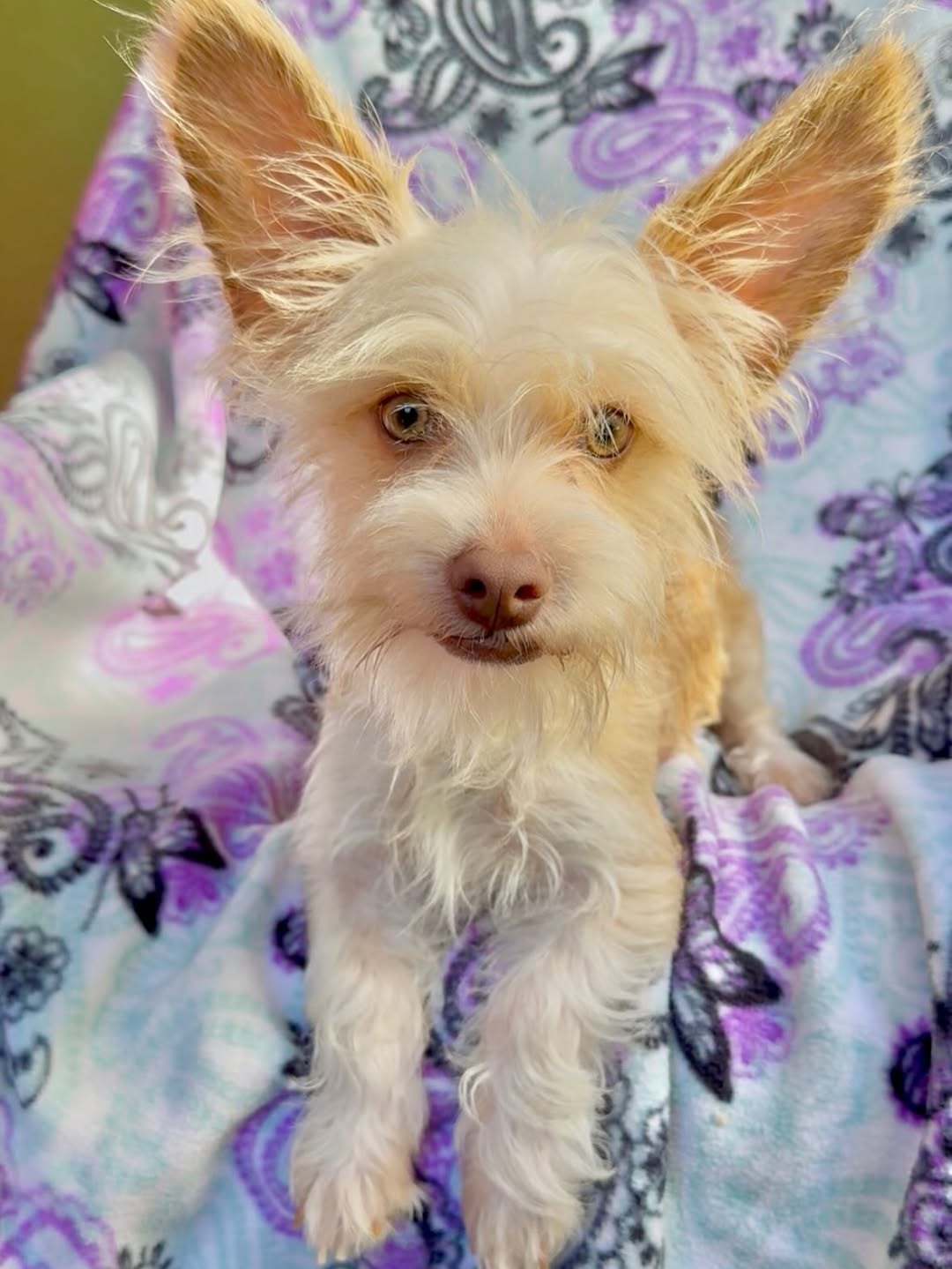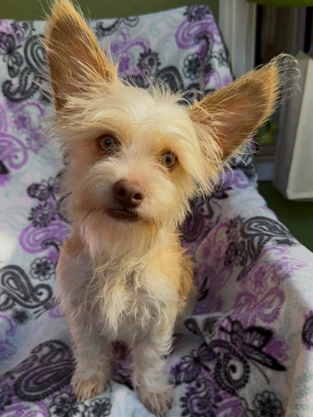Yoda er en 6måneder gammel Yorkshire terrier-blanding på 7/8 pund med de største ører NOGENSINDE… de er som parabolantenner. Han har også de mest hasselbrune øjne, ærligt talt er de gule!! Yoda er den bedste dreng med de bedste ører. Han elsker at vise alle sit legetøj og elsker at lege med dig, men kan nemt underholde sig selv, når du har travlt. Han er en klog lille fyr, der er professionel på pottemåtten og elsker at møde nye mennesker! Han er meget venlig og bruger ikke sin stemme særlig ofte. Han er mere en observatør. Han vil følge dig for at sikre sig, at han ikke går glip af det sjove, men vil også gøre sine egne ting. Når han får zoomies, er han sjov, men elsker også at blive ridset. Yoda er en perfekt hvalp med ro og energi. Han er også meget god til at gå i haven for at gå på potte, hvis dit hjem har en. Yoda vil trives i enhver husstand med børn på seks år og derover.